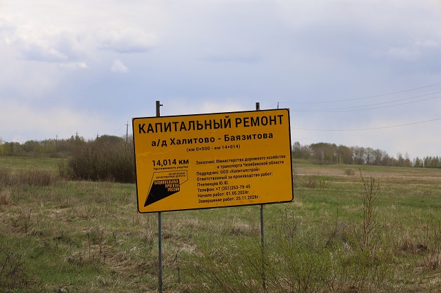 По словам главы поселения Ахмата Шавалеева, заказчиком строительства дороги является министерство дорожного хозяйства и транспорта Челябинской области. Добиться ремонта дороги удалось после многочисленных писем и обращений от жителей и районной администрации о включении в план строительства ведомства. Делать дорогу начали с центра деревни Баязитова в сторону Халитова до подъезда к деревне, чтобы не разрушать новое покрытие, а идти от обратного.